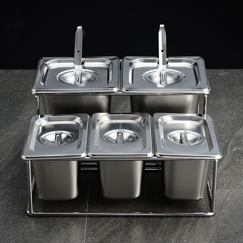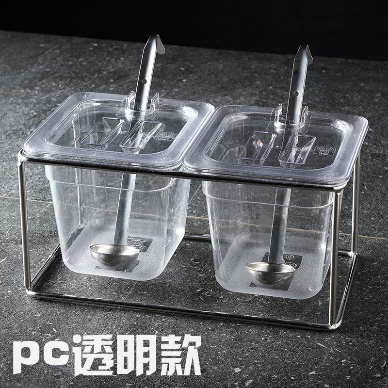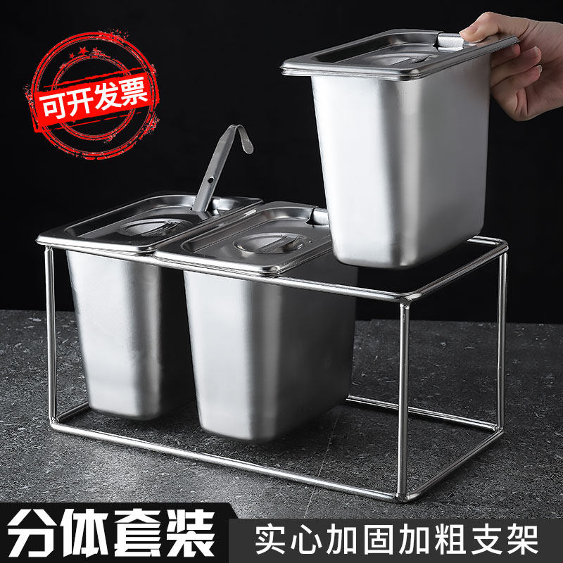 1 9 stainless steel copies basin Shelf Milk Tea Shop Fruit Jam Box Fruit Powder Box Divided flavoring plaid basin with lid square box