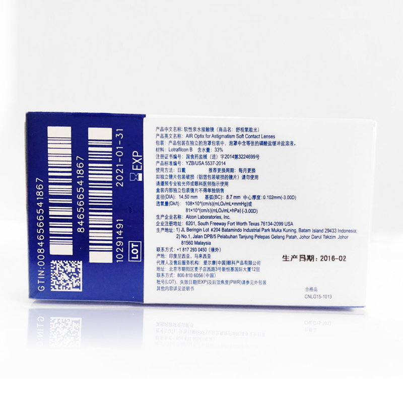 Contact lens and care solution product name: