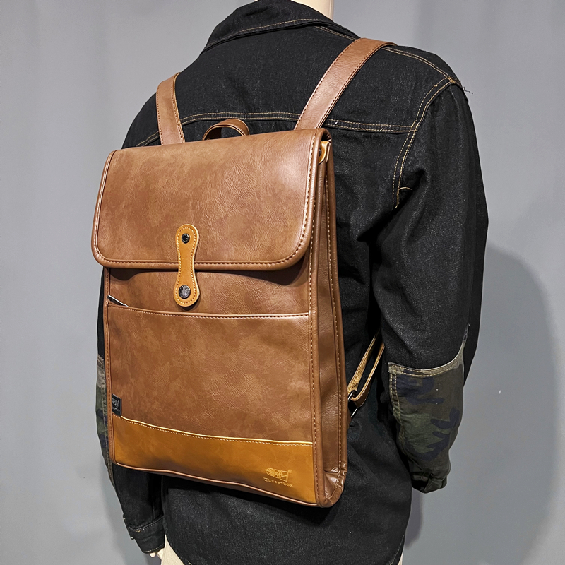 New Japanese large-capacity Korean version leather texture briefcase backpack fashion tide brand backpack casual school bag