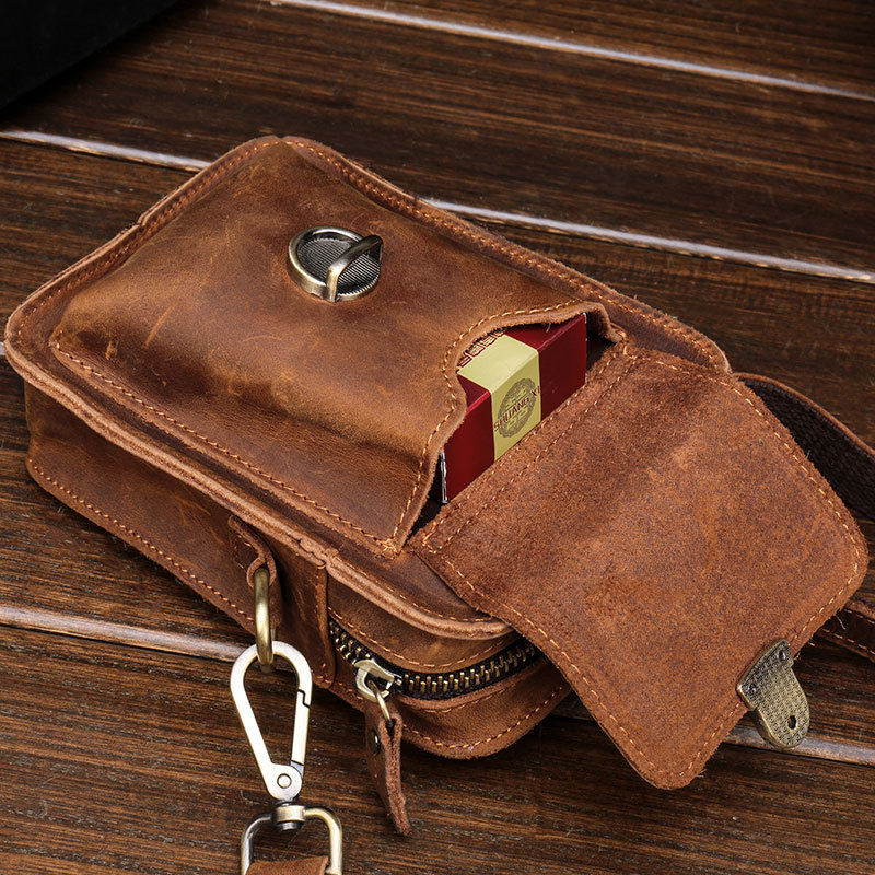 Handmade Leather Bag Mobile Phone Bag Men's Waist Bag Small Bag Crossbody Genuine Leather Crazy Horse Leather Mini Multifunctional Satchel