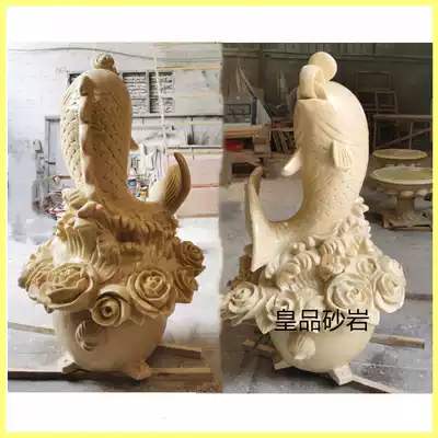 Sandstone sculpture carp water spray European fountain outdoor waterscape sculpture glass fiber water spray factory direct sales
