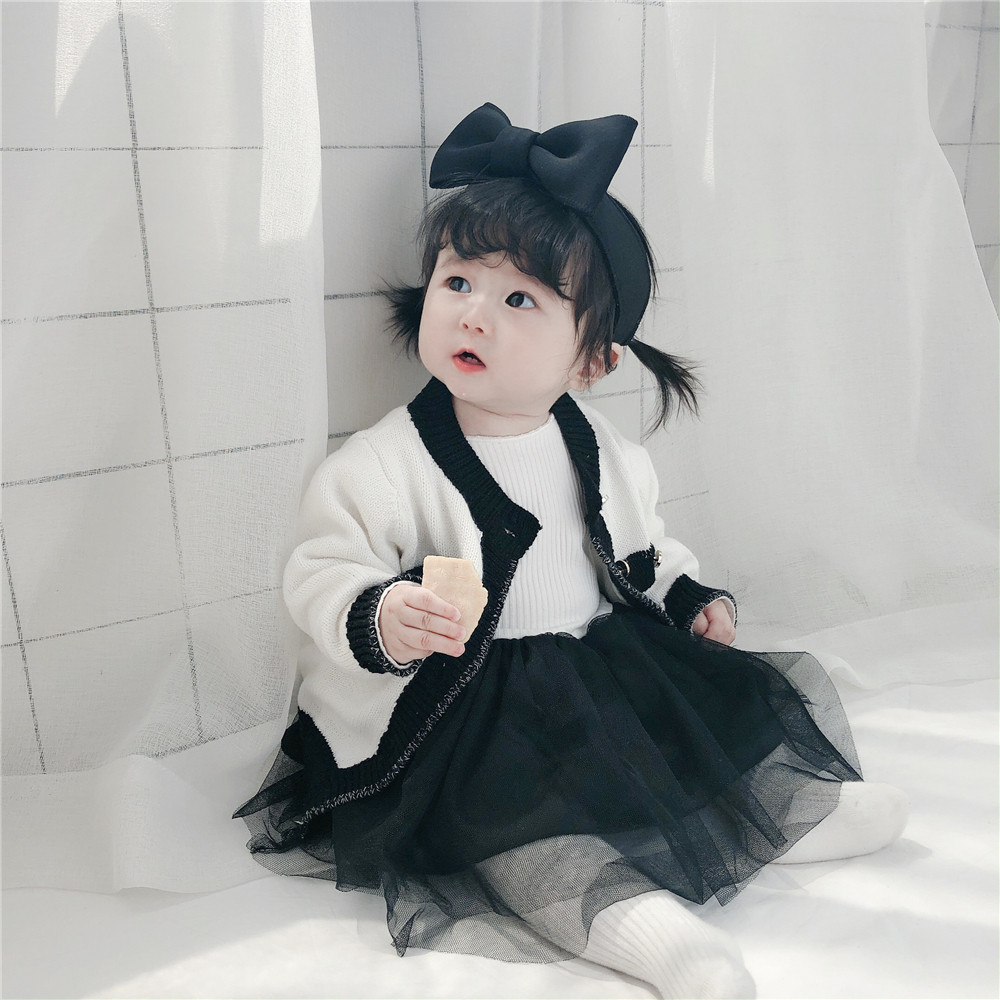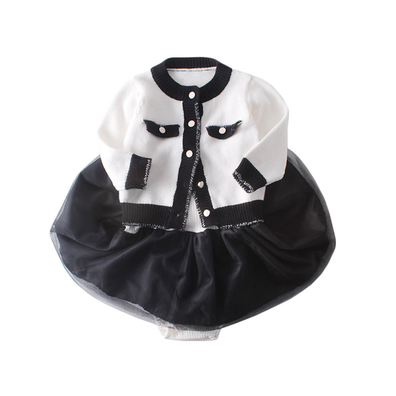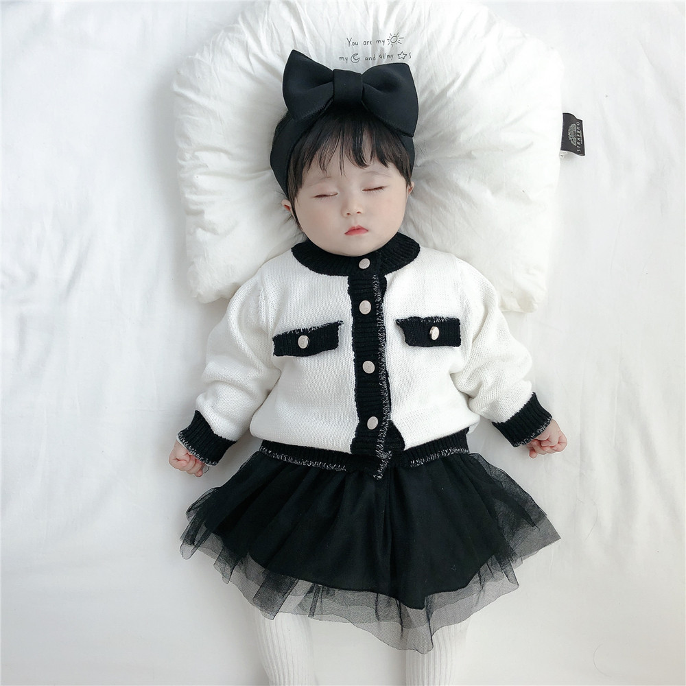 Spring and autumn female baby needlework sweater suit 0-2 year old female baby small fragrance princess long sleeve blouse khaskirt two-piece set