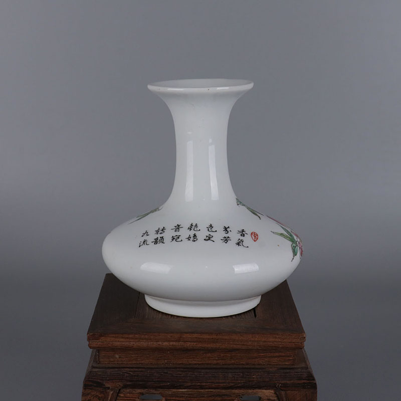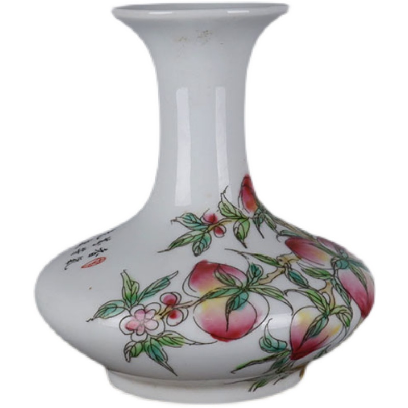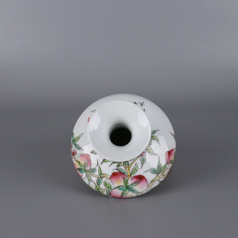 Republic Of China Pink Nine Peach Tattooed Flat Belly Vase Ancient Play Antique Porcelain Jingdezhen Old Goods Handcrafted Pendulum Pieces Antique Collection