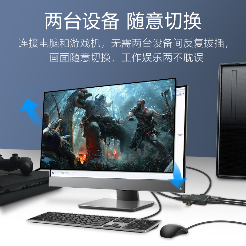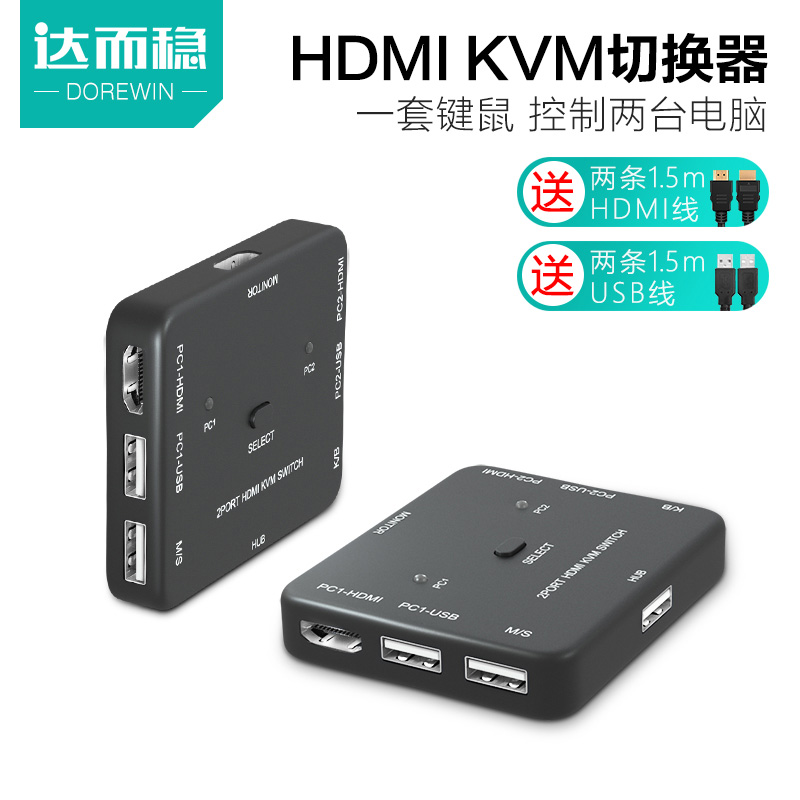 Da Er Stable KVM Switch HDMI Keyboard Mouse Sharer USB2 Port One Drag Two Splitter Computer Host HD Line One Minute Two In One Out Display Desktop Screen 4K Synchronizer