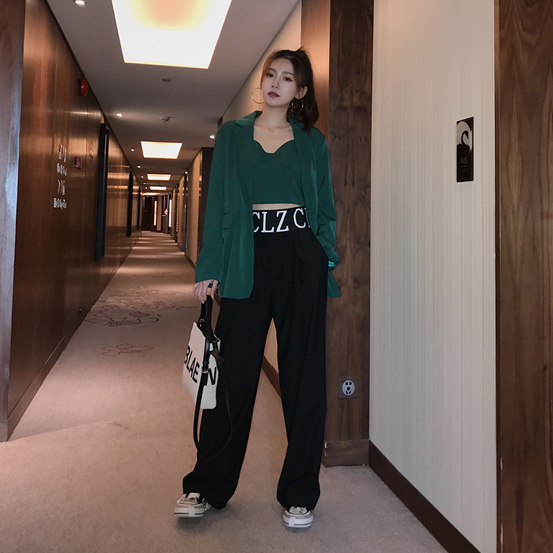 (Photographed five-fold) pendant with wide leg pants female high waist Korean version letter tightness waist straight cylinder loose casual pants