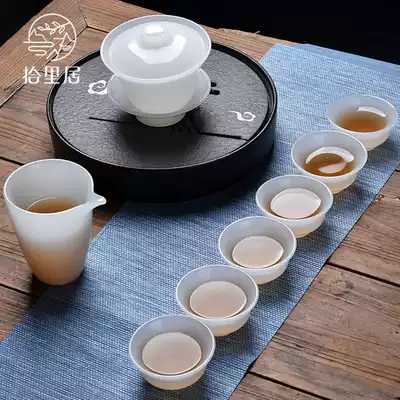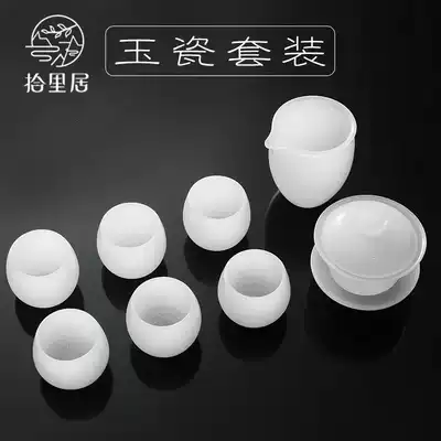 Pick up the kung fu tea set set jade porcelain cup cup white porcelain cup tea cup white porcelain bubble teapot high-grade household large