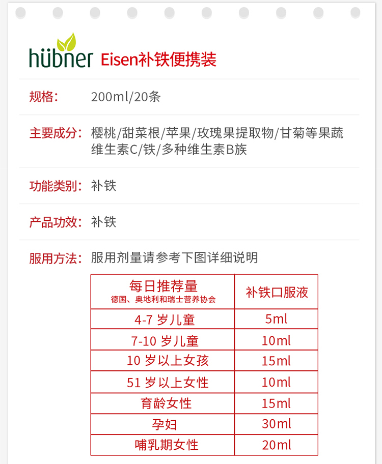 Germany imported iron supplement Hao Bona Eisen iron supplement VC supplement XUE oral liquid Huebner portable children B family