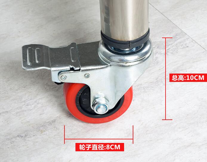 Stainless steel shelf with wheel 38 round tube special Universal wheel with brake flat wheel