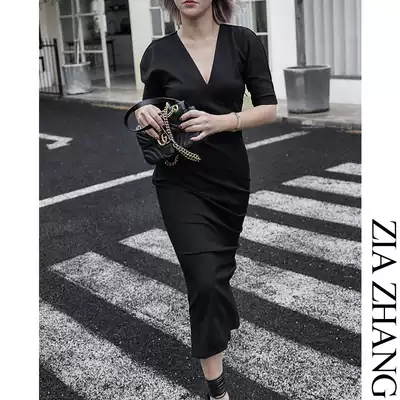 Z boss V-collar short sleeve slim dress hanging shoulder lamb leg sleeve two wear medium and long dress