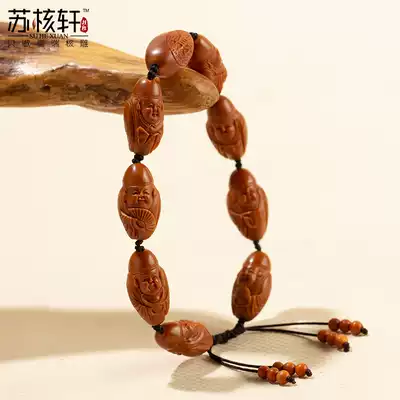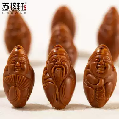 Zhoushan pure hand-made works of fine nuclear carving small seed wealth god hand string carving female Zhaocai Jinbao olive hand