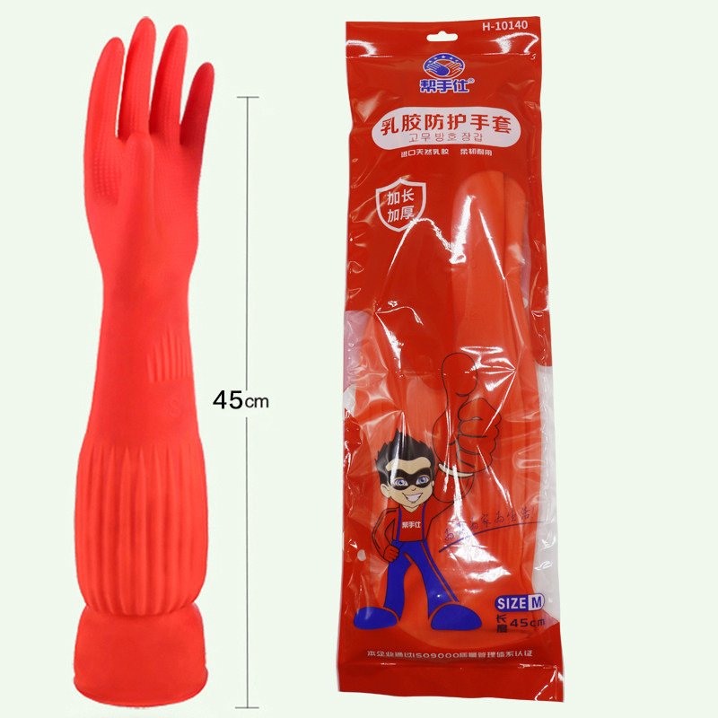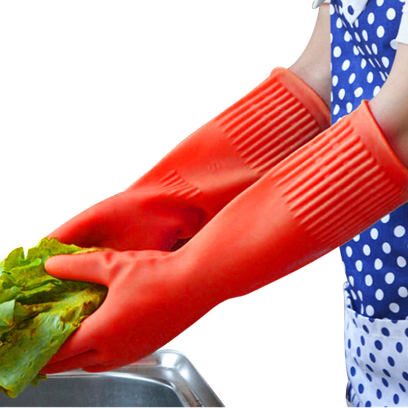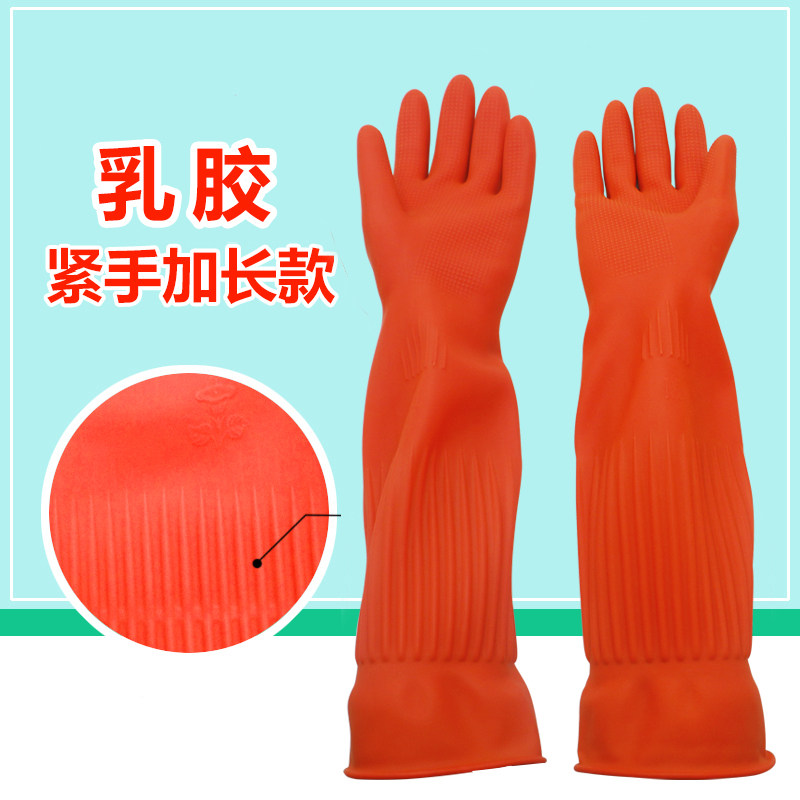 Lengthened gloves kitchen women's rubber dishwashing household latex leather gloves labor protection waterproof thickening wear-resistant durable work