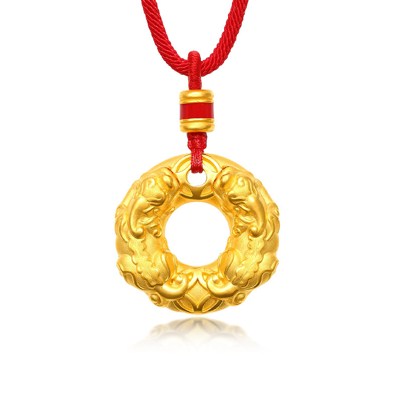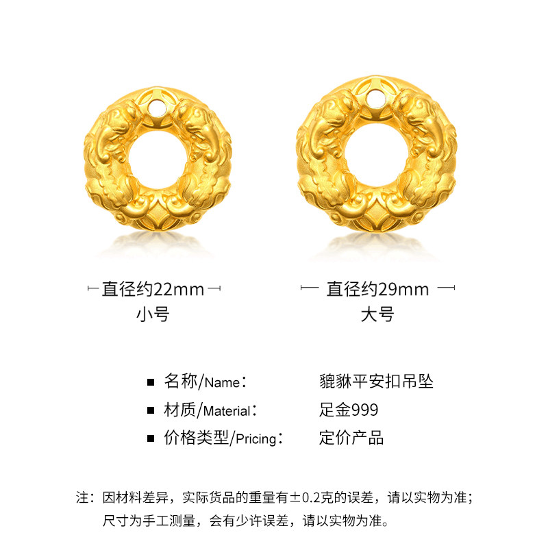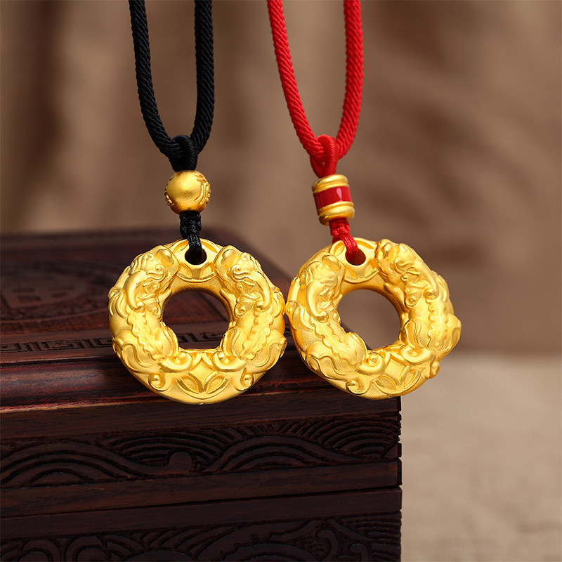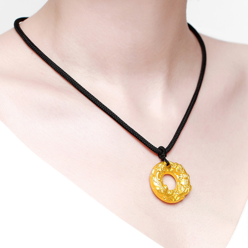 Pure gold cylinder gold beads Pure gold Pixiu safety buckle pendant Small size about 2 4-2 6g (free black neck rope) Pure gold blessing character gold beads Pure gold Pixiu safety buckle pendant Small size about 2