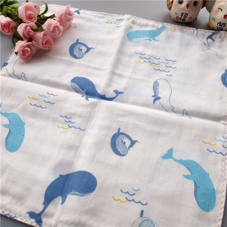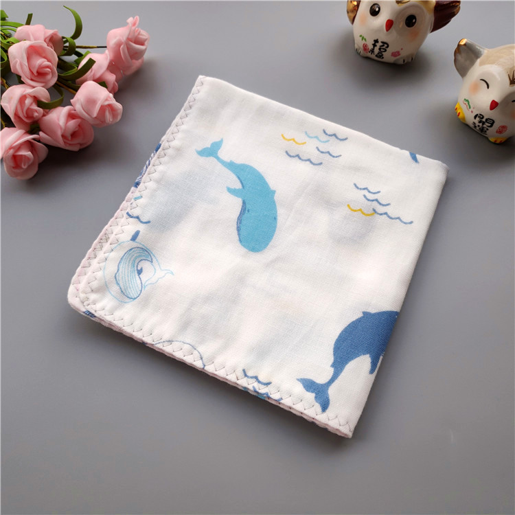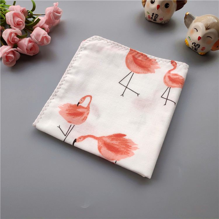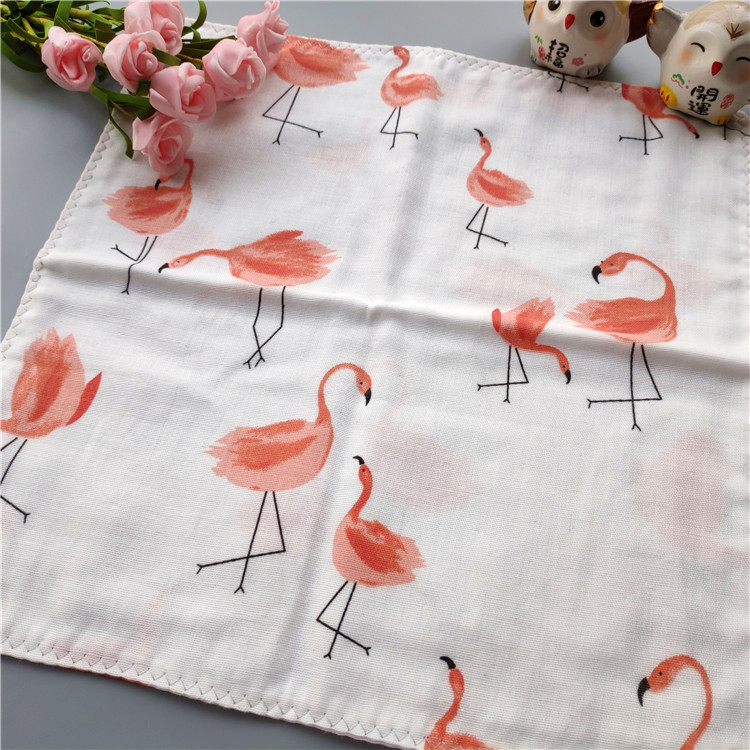 Dolphin printed cotton handkerchief double cotton yarn soft sweat-absorbent hand towel flamingo cotton square towel sweat towel female