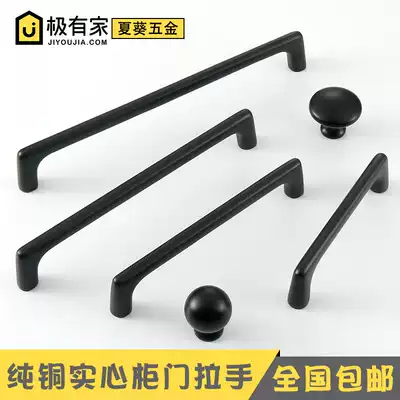 American pure copper cabinet door handle modern simple black all copper handle whole cabinet door handle drawer single hole copper handle