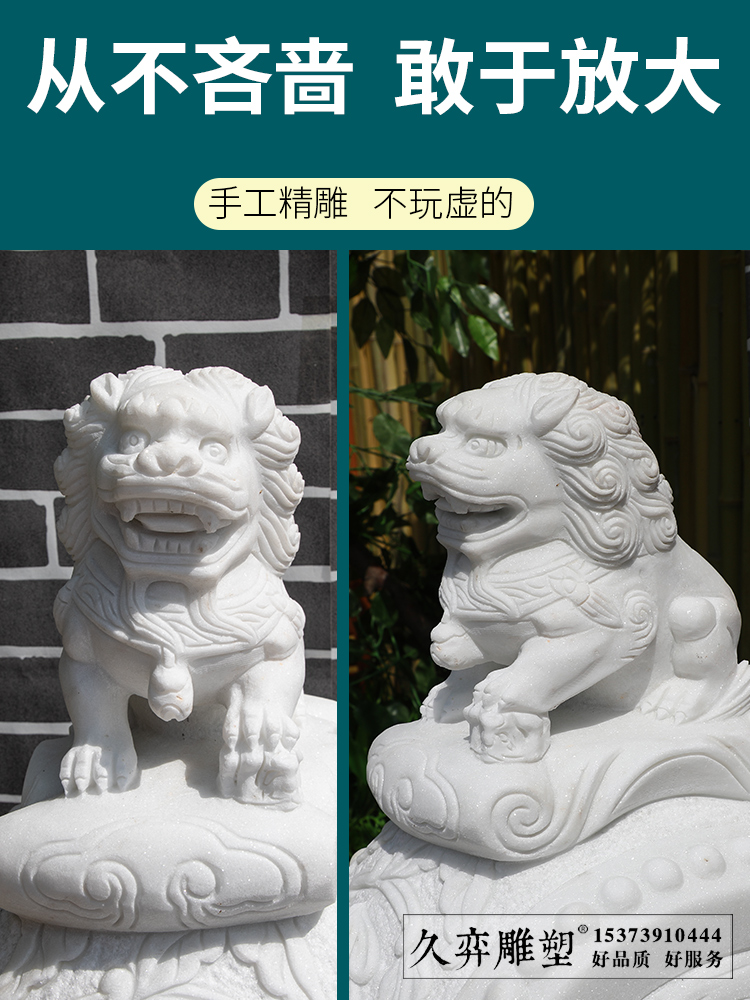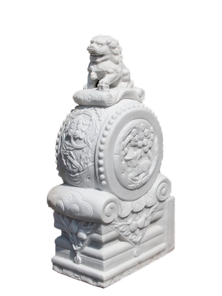 Stone carving Lion gate pier holding Drum Stone a pair of courtyard door ornaments natural white marble sculpture decoration stone pier stone drum