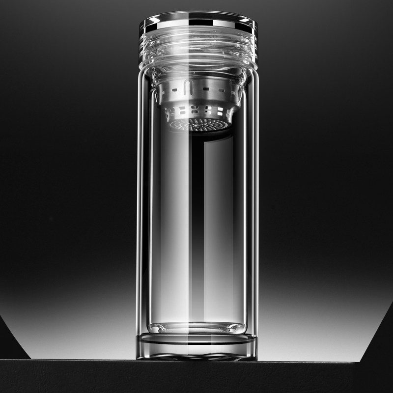 (Town Store Treasure) high-end men's glass cup thickened delivery leader with double layer tea cup transparent cup