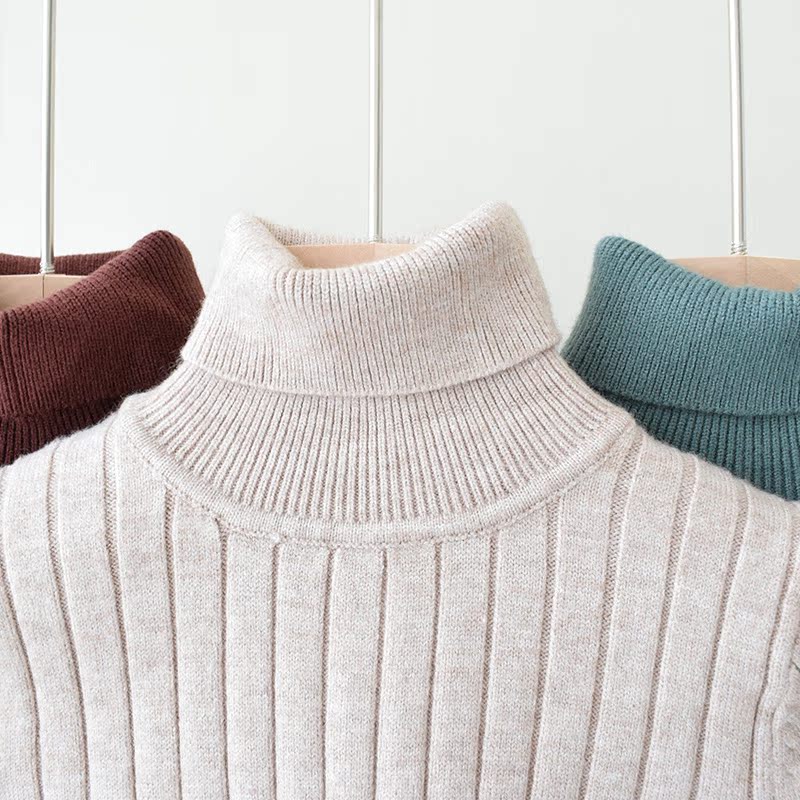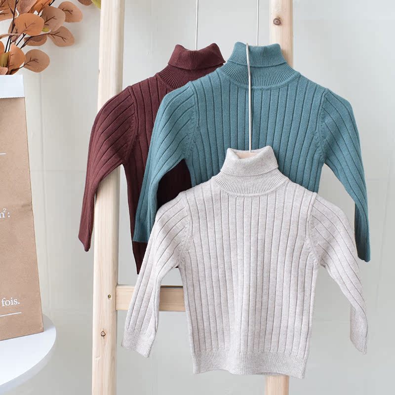 Children's turtleneck sweater spring and autumn long-sleeved top boys and girls solid color wool pullover big elastic all-match bottoming shirt