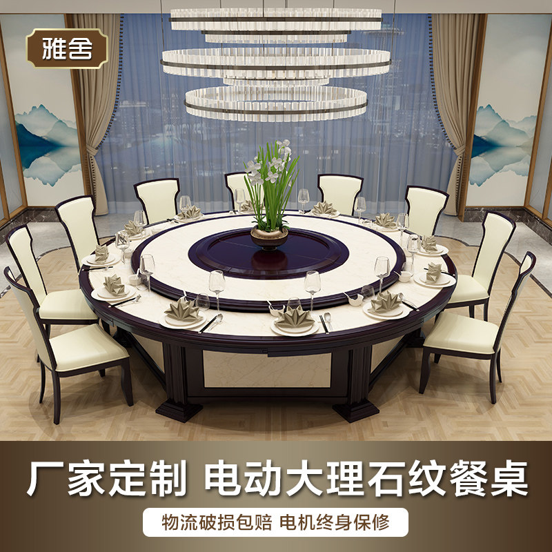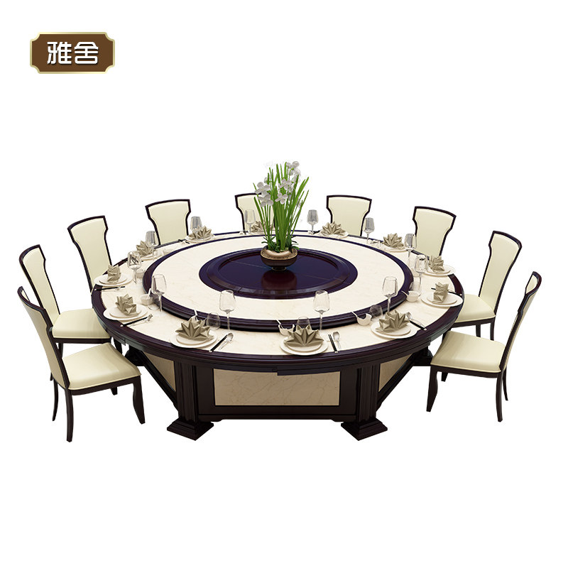Yashe electric big round table 20 people hotel imitation marble electric table new Chinese restaurant banquet hot pot table
