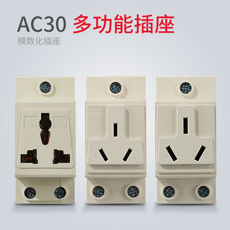 AC30 multi-function modular socket 3-hole three-plug 10A-16A distribution box rail-type power outlet Air conditioning