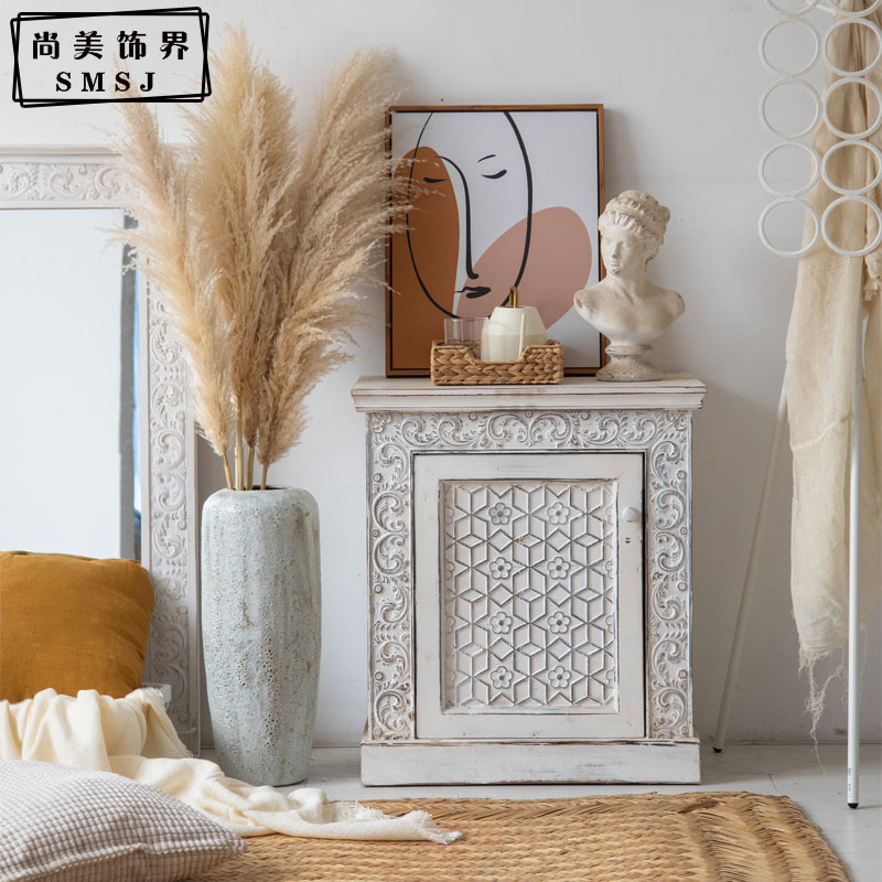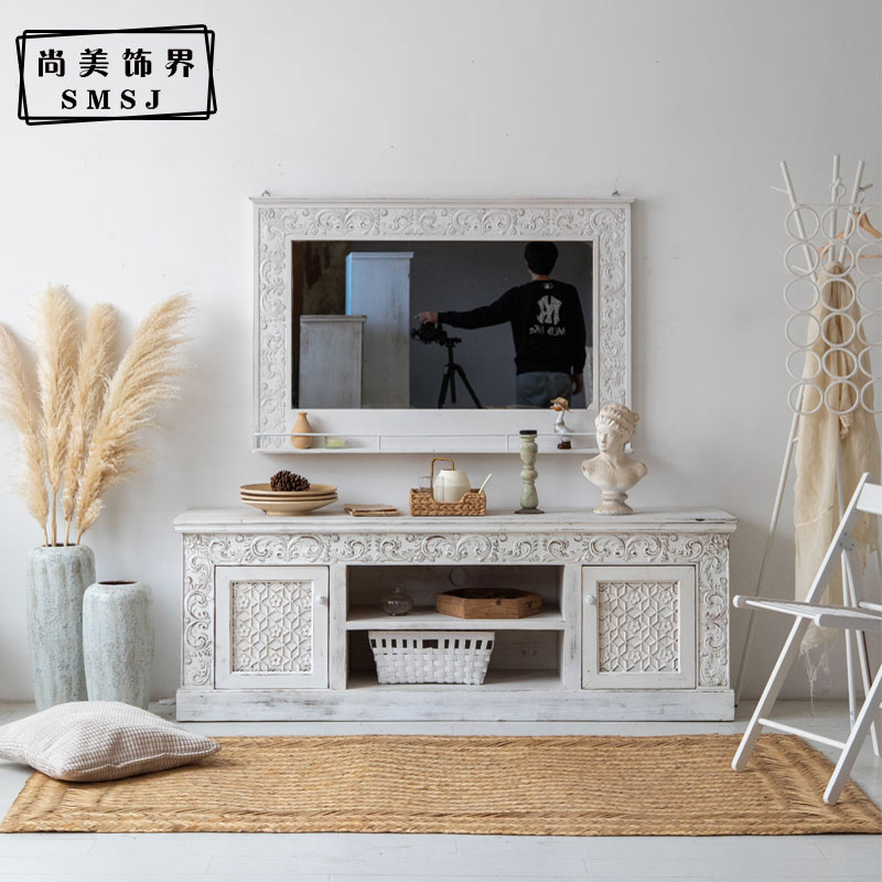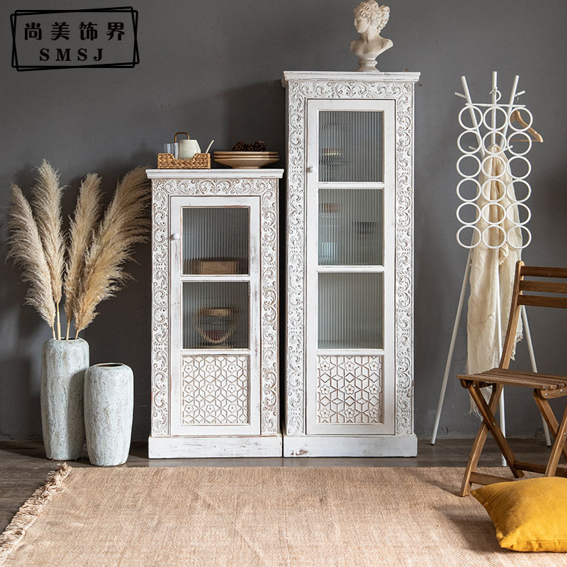 American Country Carved Entrance Cabinet Retro Solid Wood Dining Room Cabinet Living Room Bedroom Bed and Breakfast TV Cabinet Old Decoration Cabinet