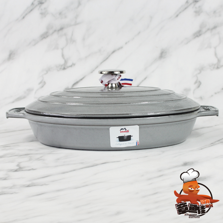 France STAAUB Enamel Cast Iron Pan Flat Round Baking Pan Flat Oval Small Pan Iron Plate Burning Dinner Plate Covered