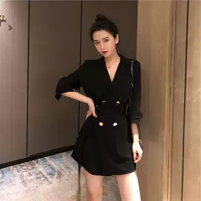 SANDRO Moscoloni small black dress Hepburn style slim suit dress waist thin temperament