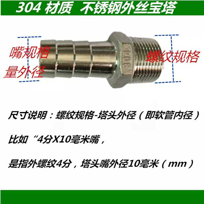 304 stainless steel leather pipe joint Greenhead hose water pipe water nozzle 2 points 3 points 6 4 points 2 inch outer silk pagoda