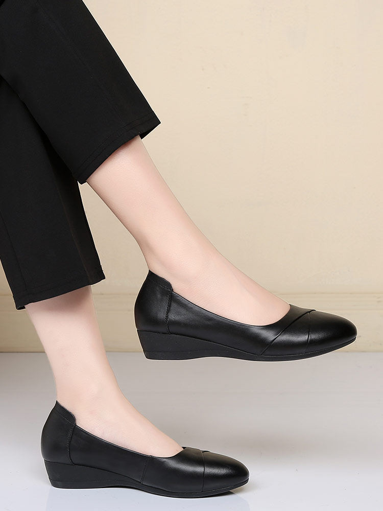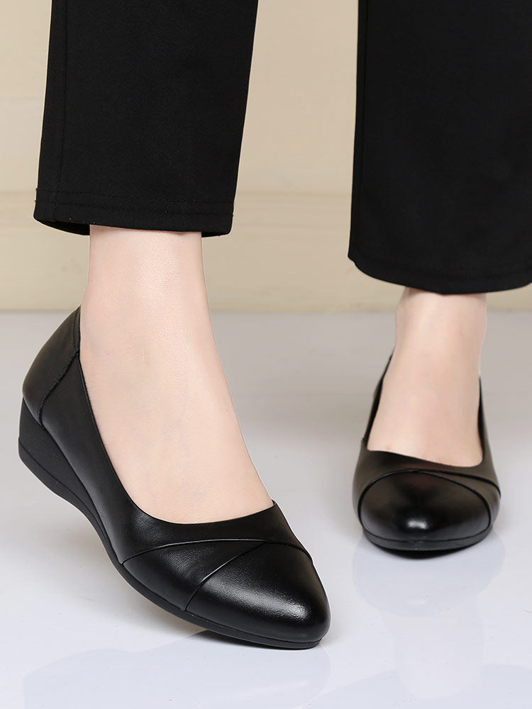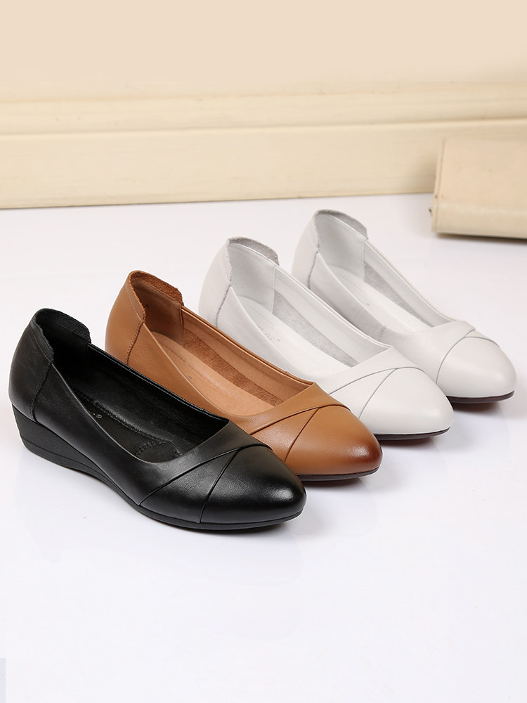 Leather mother shoes soft sole soft leather flat leather shoes large size shallow mouth wedge shoes middle-aged and elderly cowhide women's shoes summer