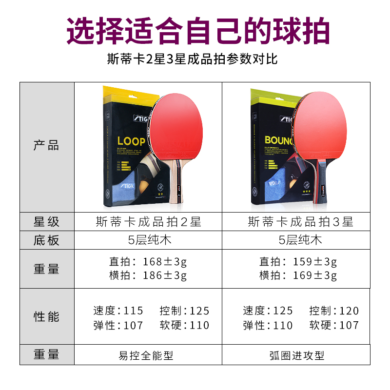 STIGA Stiga two-star table tennis racket 2-star beginner single shot 1 pack Stiga student table tennis racket