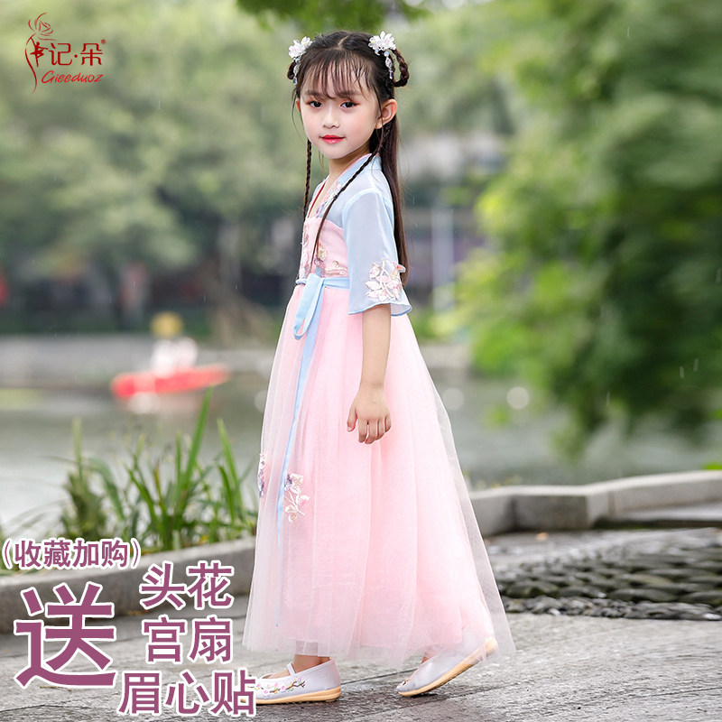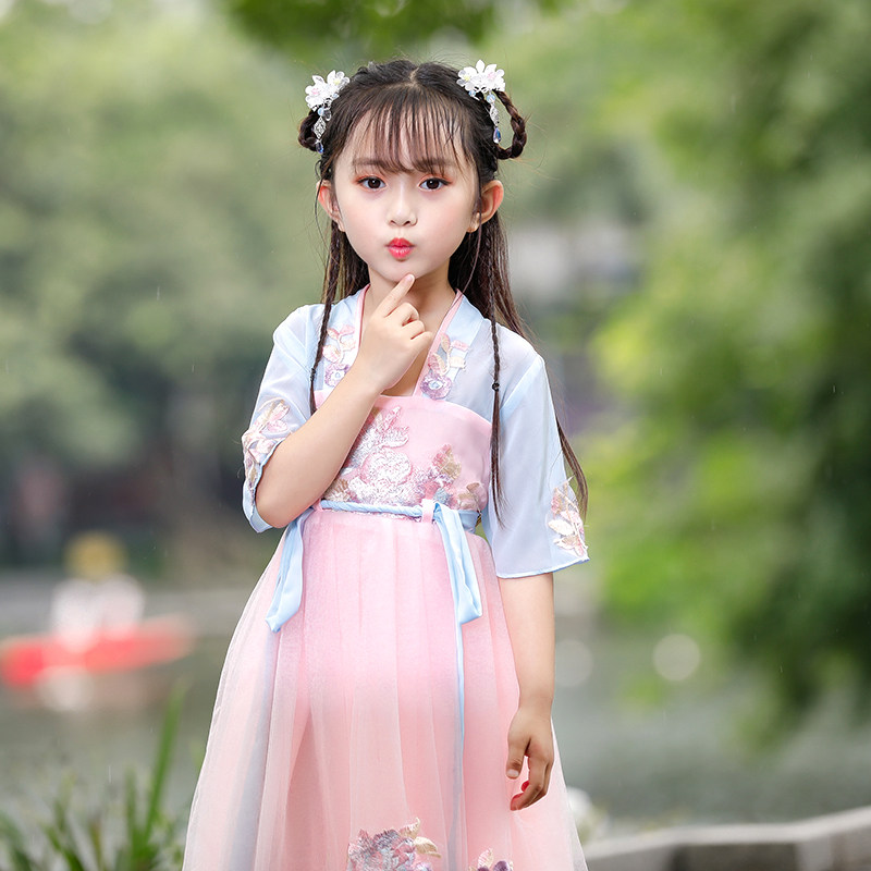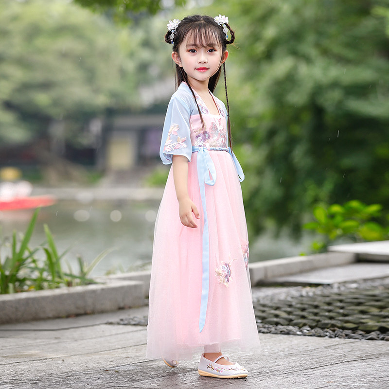 Girl Han Suits Summer Dress New Hanfu China Wind Tang Dress Children's Ancient Dress Improvement Jacket Girl Foreign Dress Shake Sound