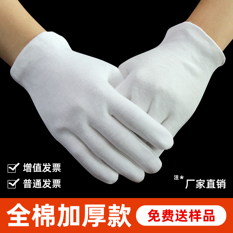60 Double White Gloves Gift Instrument Pure Cotton play disc Pearl Job Raubao Driving thin All cotton cloth Thickened Work Gloves