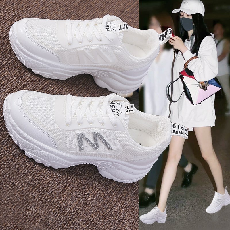 Tide Cards 2022 Spring Summer New Heightening Sneakers Genuine Leather Breathable Comfort Little White Shoes Casual Thick Bottom Old Daddy Shoes Woman