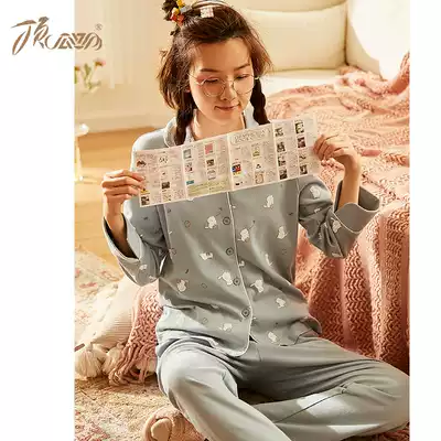 Top melon pajamas female spring and autumn cotton student living clothes cute cartoon printing simple long sleeve home suit