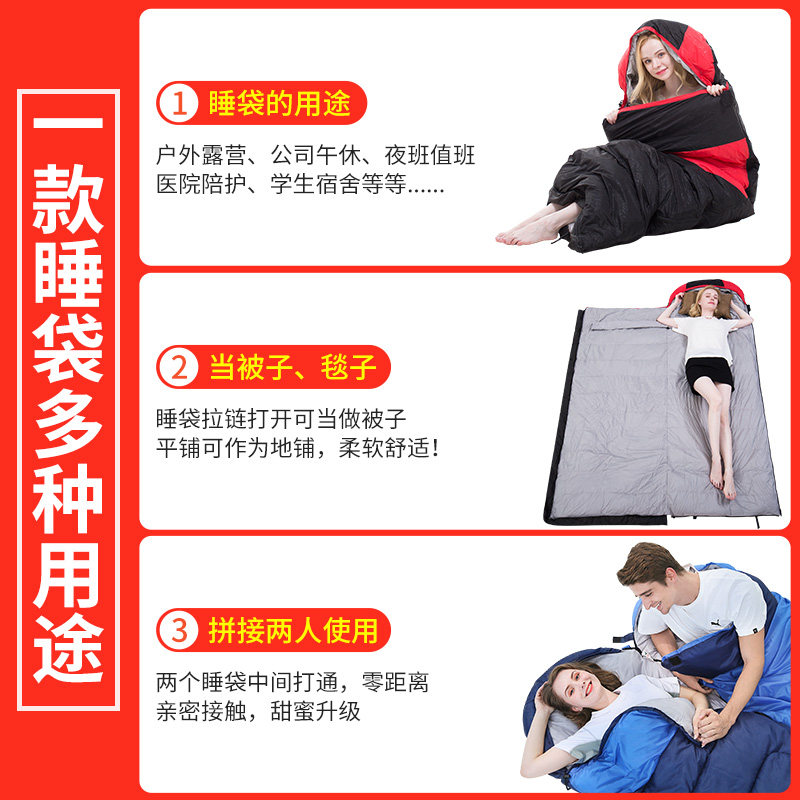 Winter down sleeping bag grown-up outdoor travel single thickened warm camping portable winter cold proof adult sleeping bag