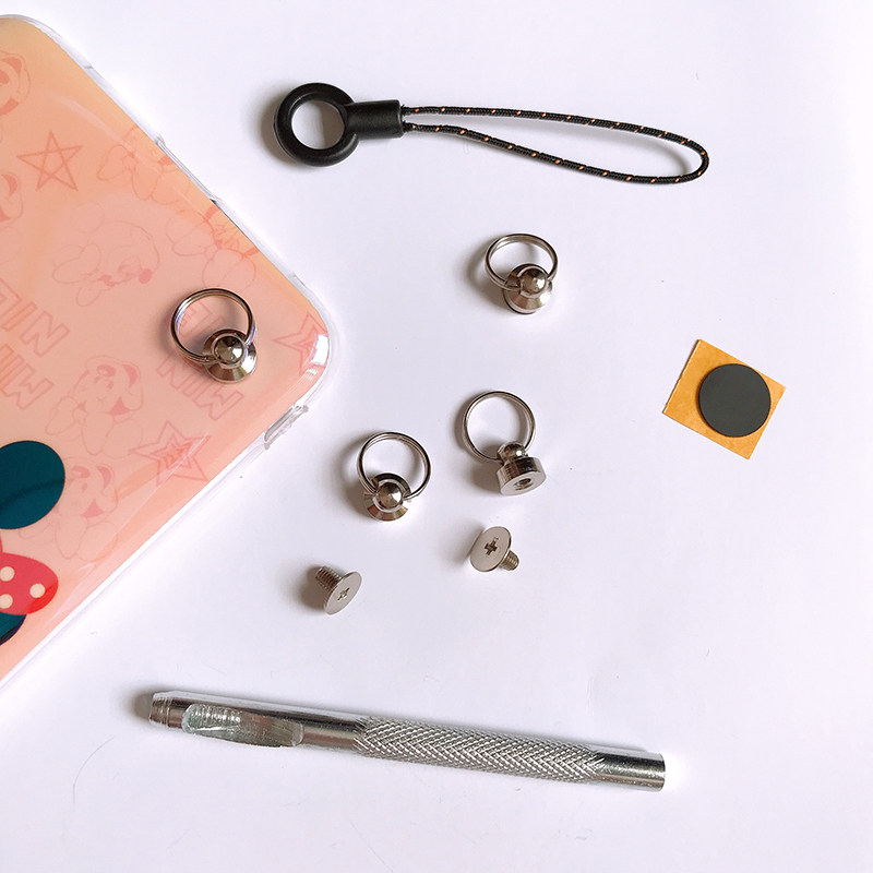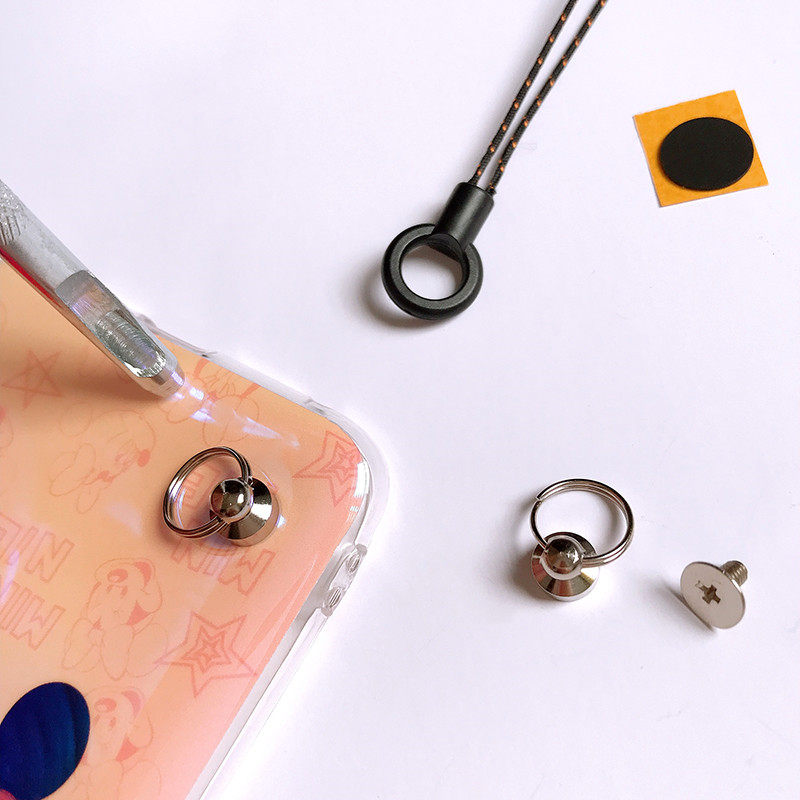 Universal mobile phone Protective case lanyard short rope holding baby bag lanyard oblique span rope fixing accessories creative DIY alloy screw punch hook adhesive hook can Hang jewelry mobile phone soft shell punching tool
