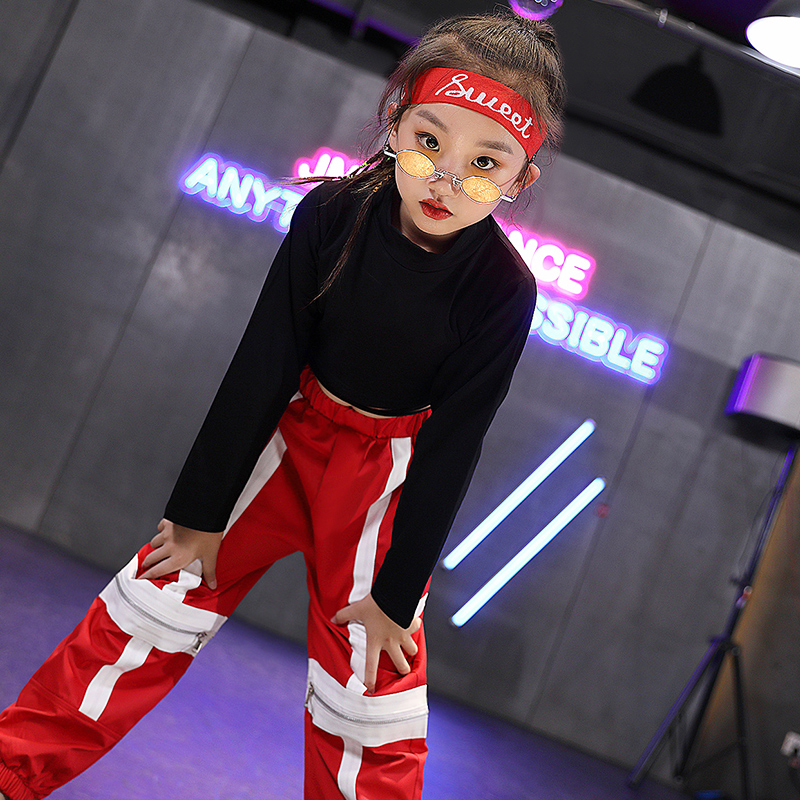 Girls hip-hop pants children's jazz dance clothing female Korean version of the navel long-sleeved hip-hop performance clothing catwalk performance clothing