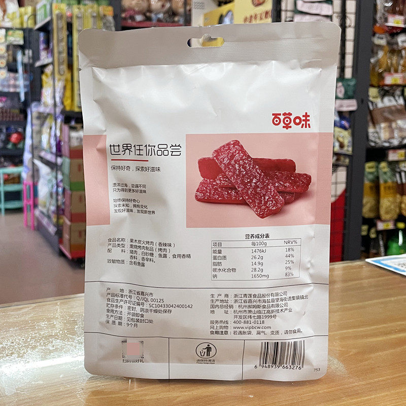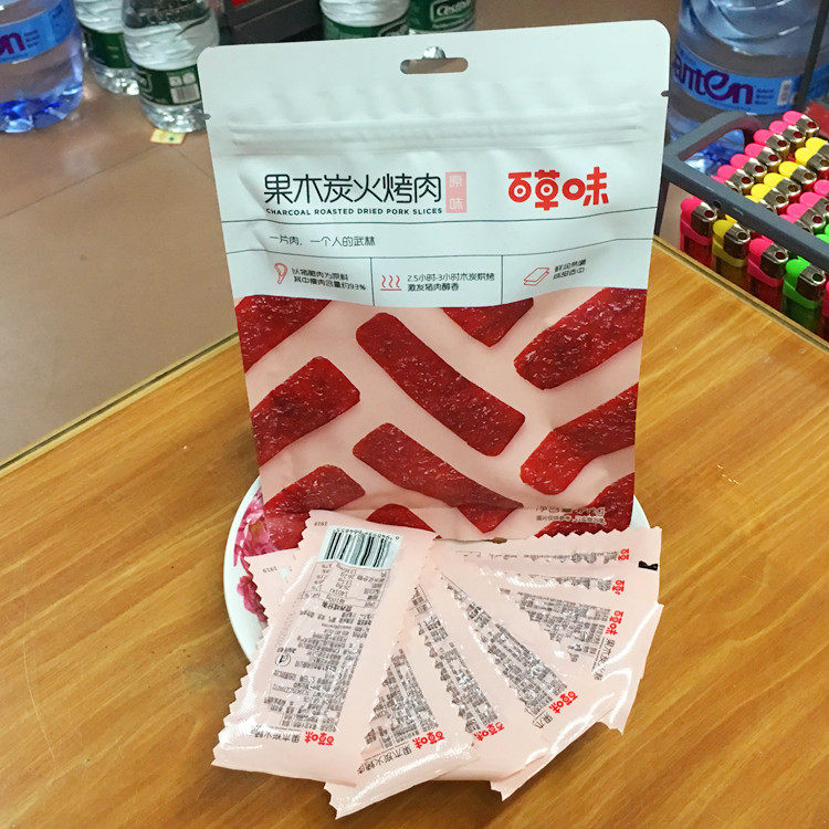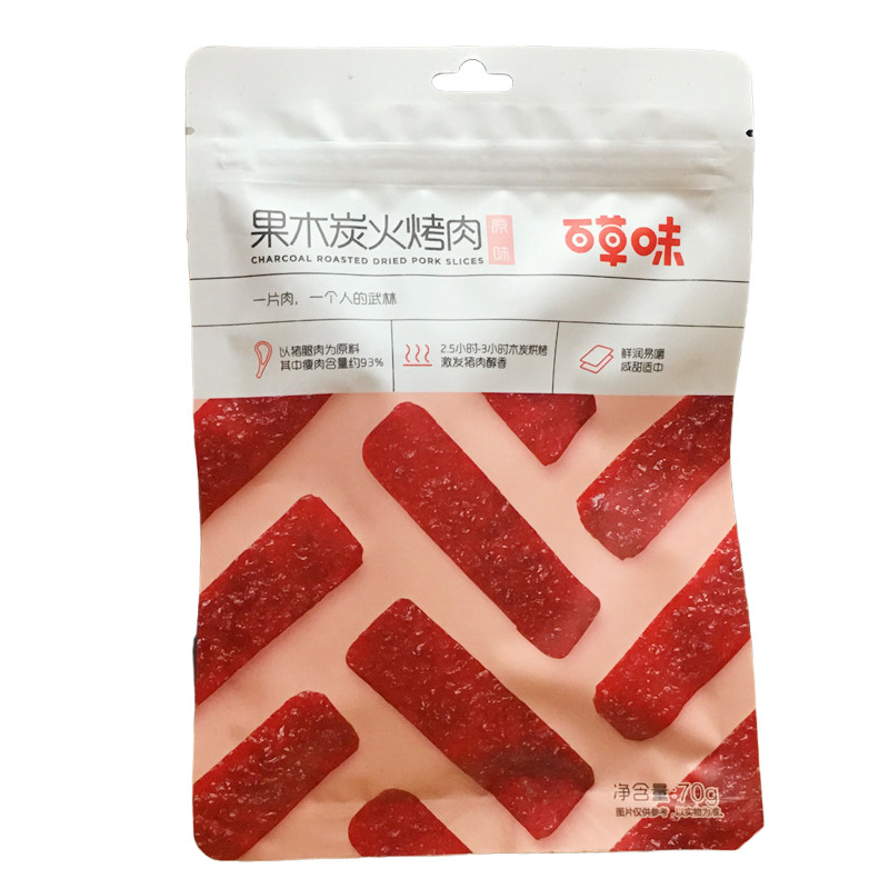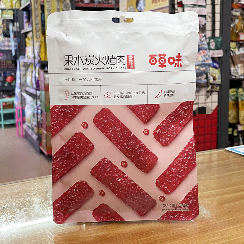 Baicao-flavored fruit charcoal-fired barbecue 70g spicy pork jerky casual snack meat jerky casual snack specialty cooked food