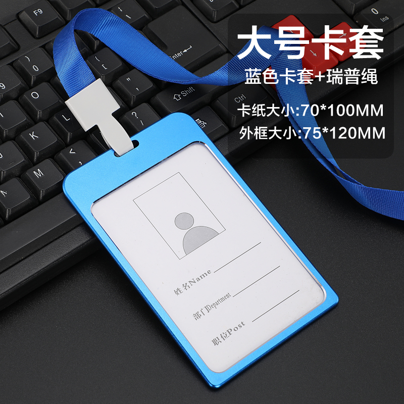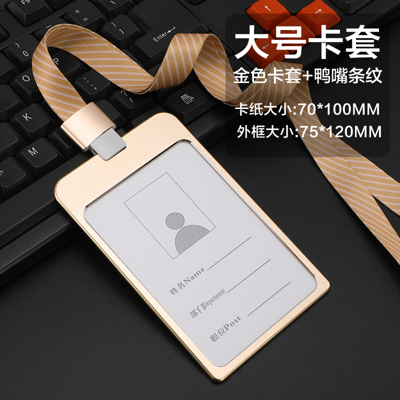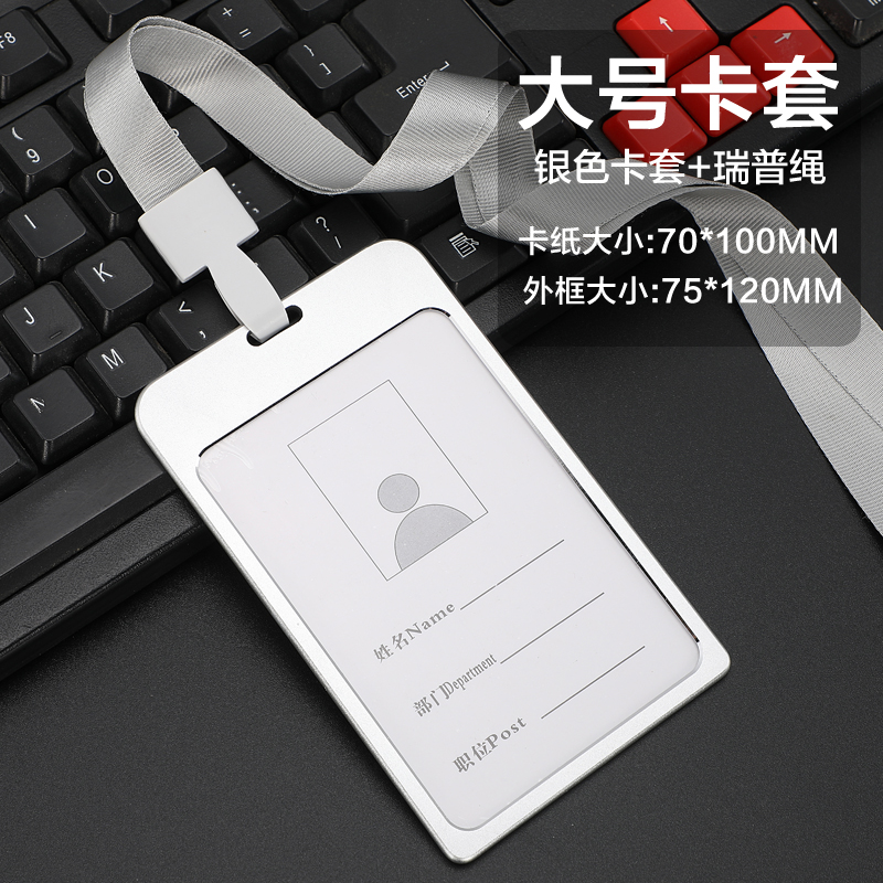 Aluminum alloy hanging card clamping sleeve documents sleeve with hanging rope work certificate sleeve large number of work card hanging cover employee's license plate number plate metal chest card factory card certificate protective sleeve card-card cover custom-made