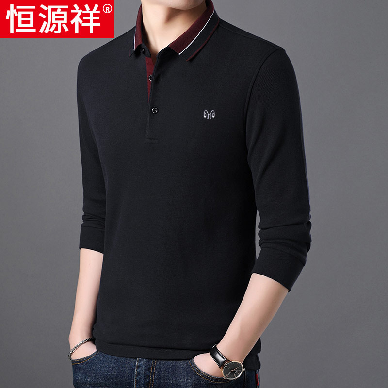 Hengyuan Xiang Dad Long sleeves T-shirt trend middle-aged men's pure cotton loose with collar casual POLO shirt spring clothes