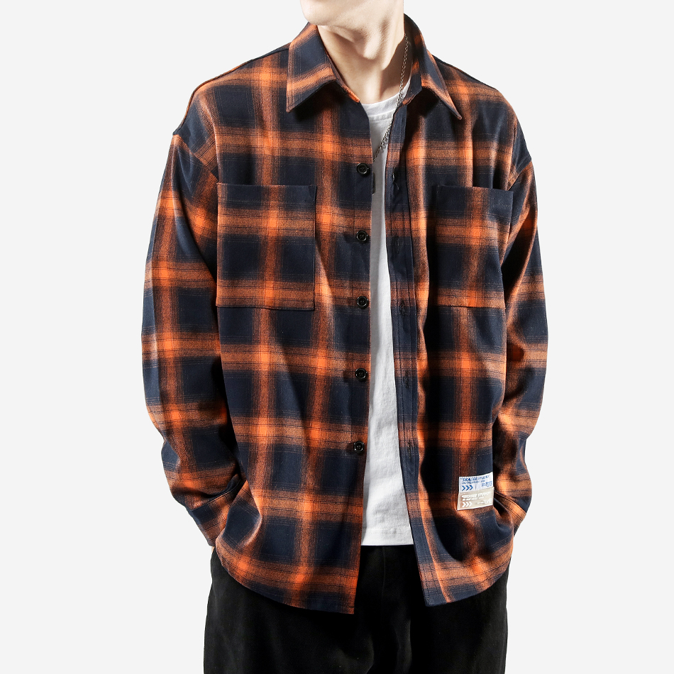 Black and white plaid shirt men autumn and winter thick warm loose long sleeve Korean trend handsome shirt casual jacket