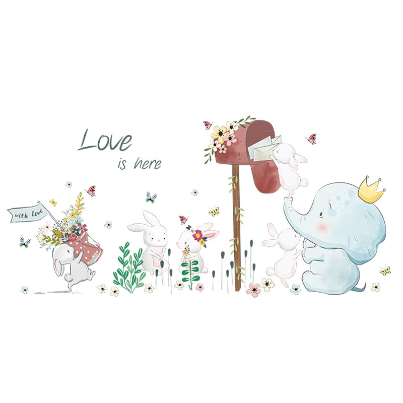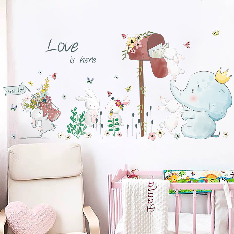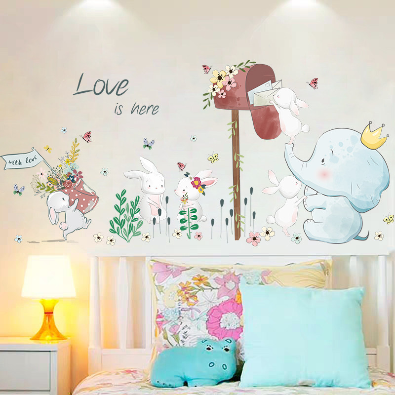 Wall-stick cute cartoon baby rabbit children's room layout walls to pattern kindergarten wall decoration stickers self-adhesion
