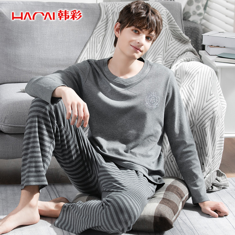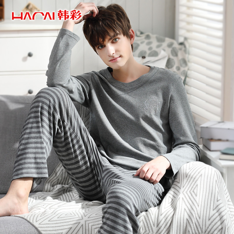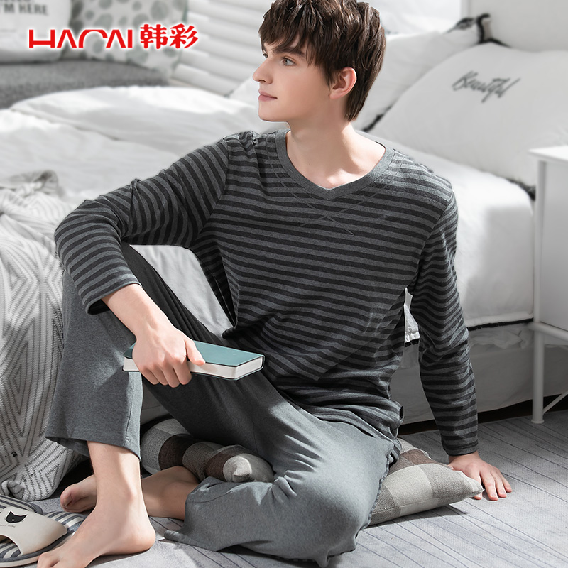 Cotton pajamas spring and autumn long sleeves cotton men's thin men's stripes for boys Loose plus size loungewear