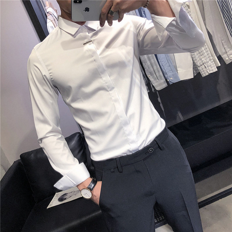 Autumn Winter new gush shirt Korean version with small version Free Ironing Shirt Hair Stylist Professional Shirt Working White Inch Shirt