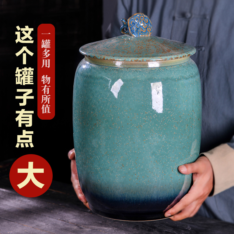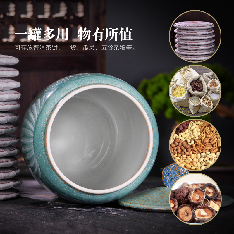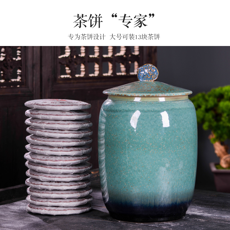 Jingdezhen Ceramic Tea Leaf Jars Seal Large Number Jar Tea Cake Pu'er Wake-up Tea Set Storage Containing Tea Jar of Tea Jar Tea Jar