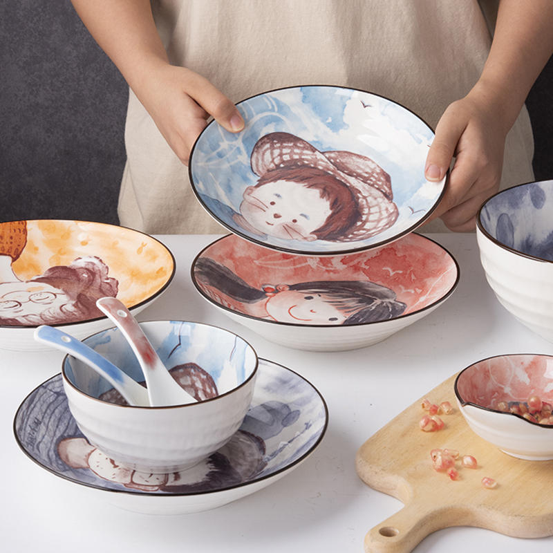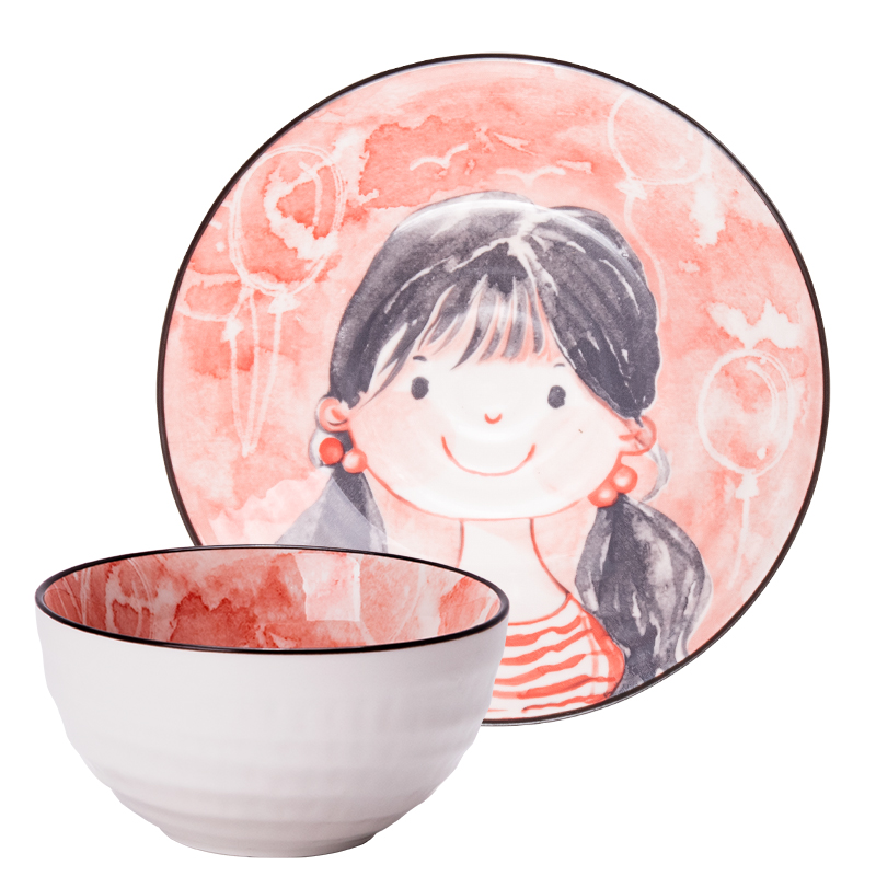 Parent-child single bowl Household rice bowl instant noodle bowl plate tableware creative cute cartoon ceramic children's couple