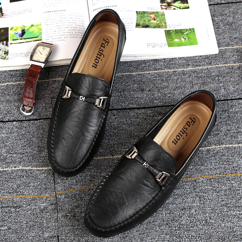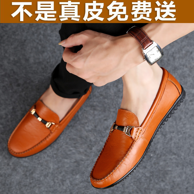 Leather shoes for men, Korean fashion, casual, men's, British leather, youth, pea shoes, soft leather, slip-on, trendy shoes