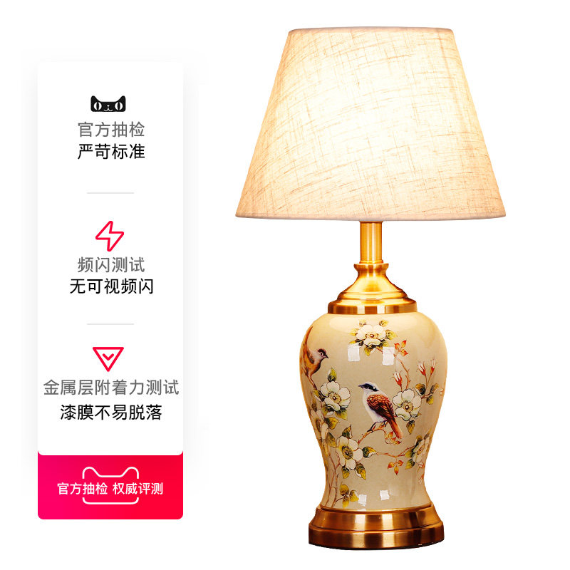 New Chinese style ceramic table lamp Classical home bedroom living room study decorated wedding romantic warm bedside lamp