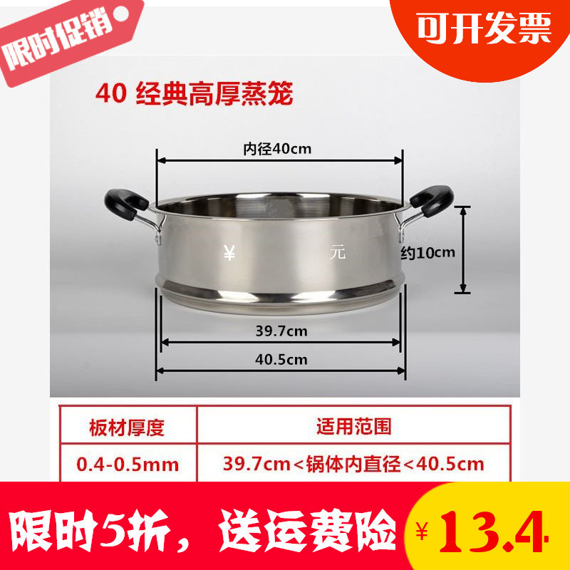 Steamed grid large capacity pot cage 32 inch pot steamed 34cm304 thick household steamer morning tea round rice cake stainless steel
