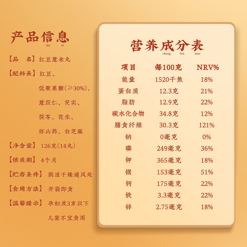 Red Bean Oligosaccharides (≥ 3 0%) Coix seed Semen Euryuria Cocos Peanuts White Sesame Seeds