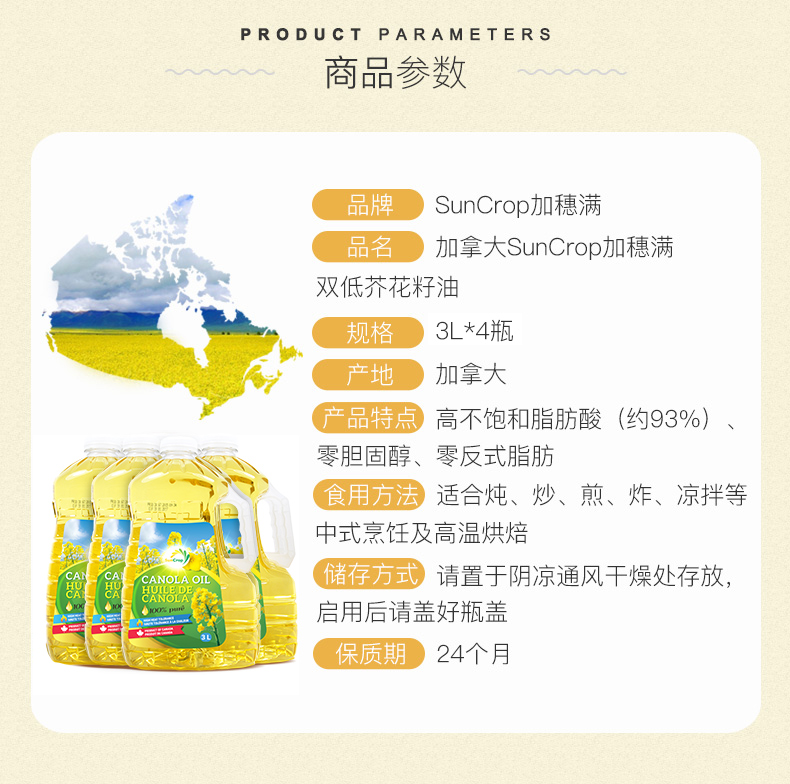 Canada imports clear mustard seed oil 3L* 4 cold pressed double low mustard acid pure rapeseed home edible barrel authentic